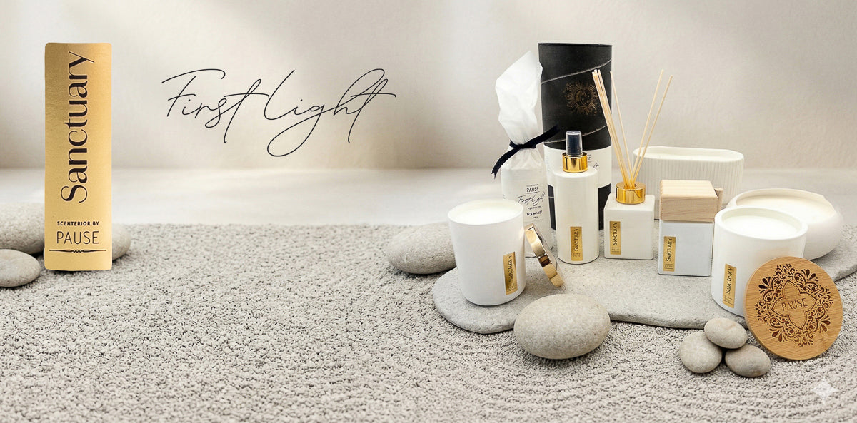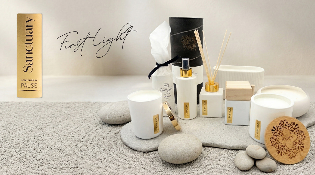 Our Scenterior Collections are designed to be the invisible finishing touch to your decor. From the soft glow of our scented candles and the sleek silhouette of our diffusers, to the hidden magic of our room sprays. SANCTUARY SCENTERIOR is available in two exquisite fragrances: “First Light” and “After Dark” each is crafted to elevate your living space.
