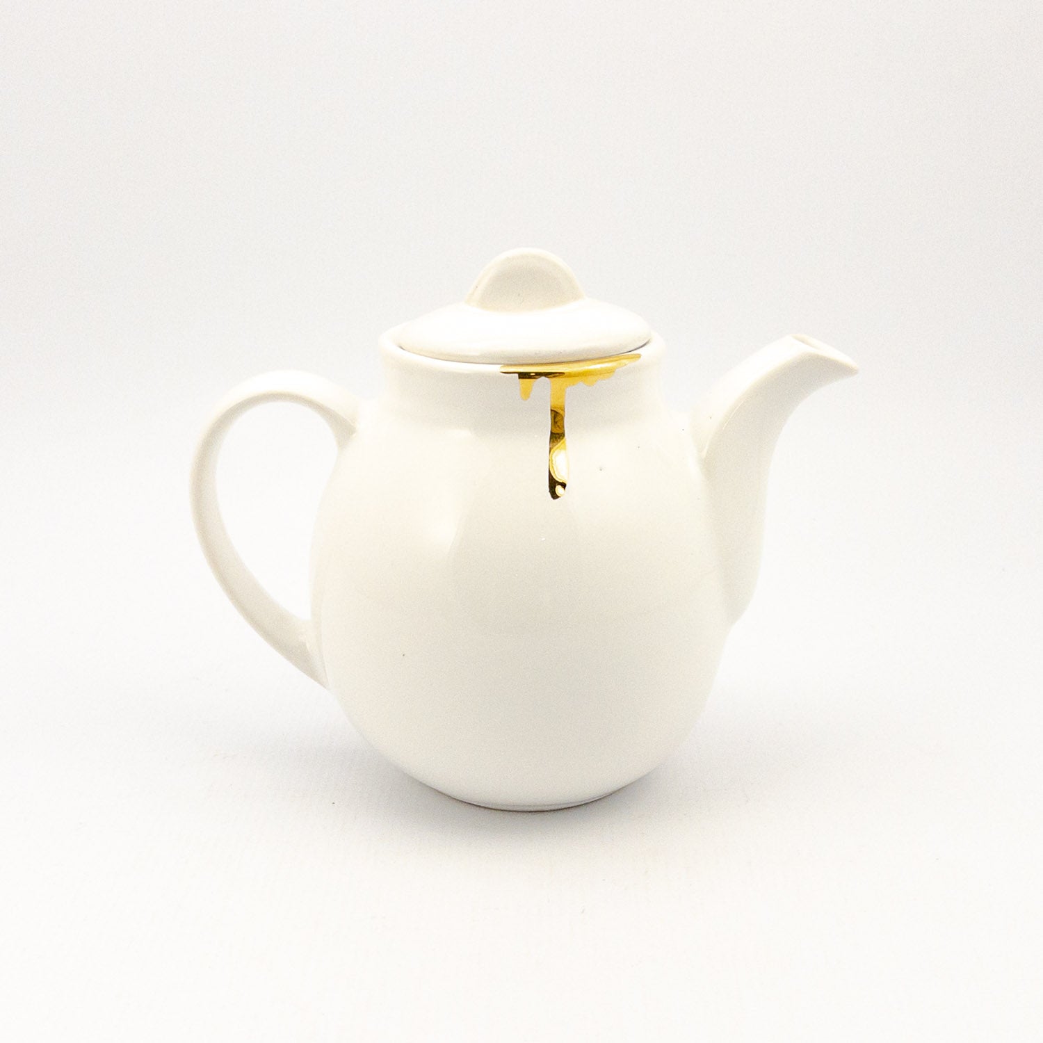 Pour yourself a cup of luxury with our handcrafted ceramic teapot, featuring a stunning 24 carat gold drip for a touch of elegance. Perfect for brewing your favorite tea and adding a touch of glamour to your kitchen. Limited edition, get yours before it's gone!