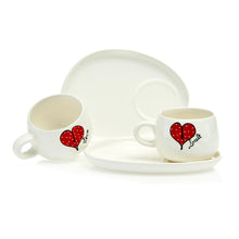 Indulge your cravings with our handmade ceramic Cup and Saucer Snack. Perfect for a quick snack while enjoying a cuppa! Spread love with heart and word detailing. (Satisfy your hunger while sipping in style!)