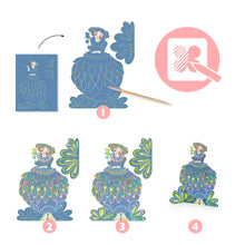 Armed with a sleek wooden stylus, little artists can bring to life the designs imagined by the brilliant artist, scratching the surface of the cards to reveal the hidden beauty beneath. But the magic doesn't stop there watch as they assemble pedestals and figures, turning their creations into real works of art that exude glamour and charm.