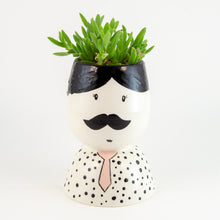 Unlike his name, John is anything but plain. From the bushy moustache to the pink tie with a polka dot shirt, John is all style. Handmade stoneware, 15cm high. Give John a funky hairstyle with a succulent or wheatgrass.
