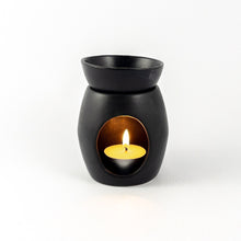 Introducing Oil Burner A - the uniquely shaped ceramic burner that adds style and ambiance to any room. Available in two textured colors, white gloss or black matt. Handmade for a one-of-a-kind touch. (Burn your oils in style - choose between sleek and glossy or bold and matte!)