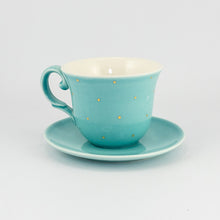 The Mad Hatter would go crazy for these gorgeous sets with gold dot detail. Handmade ceramics from Urchin Art. The Tea Cup & Saucer is stoneware and suitable for the dishwasher. However we do not recommend the item to be used in the microwave. Width (cm): 10- Length (cm): 10 - Height (cm): 7