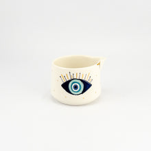 Sip in style with the Kiki Milk Jug Evil Eye. Made from durable stoneware and featuring intricate gold detailing, this jug is perfect for adding a touch of elegance to your morning routine. It's sure to ward off any bad vibes (or spills) with its protective evil eye design. Cheers!