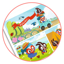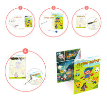 The process is simple yet utterly engaging: children rub the images with the included pencil and like magic, the images transfer onto the accordion board. Step by step, young artists position the elements on the illustrated boards to weave their own narrative. It's a journey of imagination and creativity that unfolds right before their eyes.